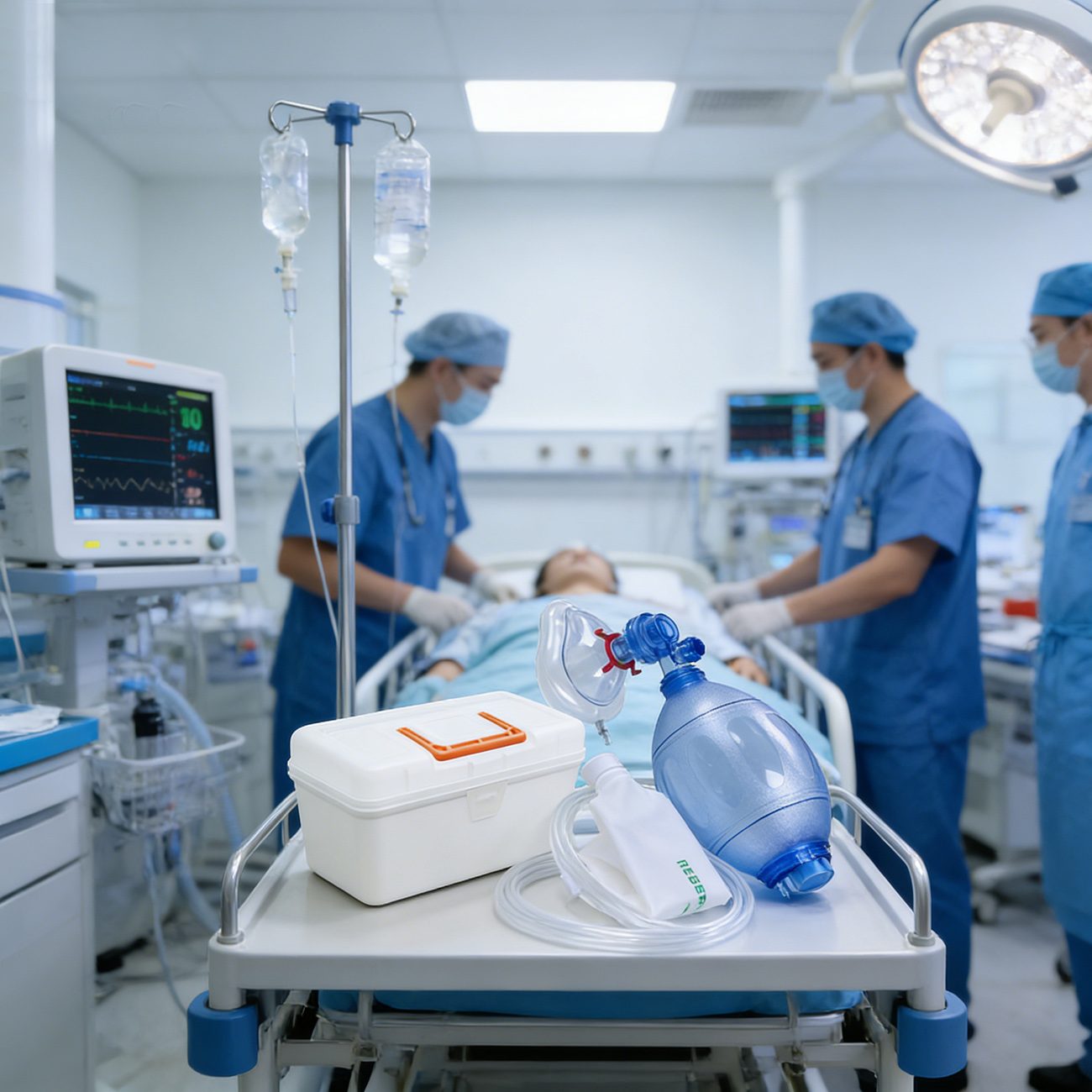 Ручной реанимационный аппарат марки Tianzuo Это устройство с ручным управлением, предназначенное для проведения искусственной вентиляции легких с положительным давлением, являющееся важным инструментом для экстренного обеспечения проходимости дыхательных путей как в клинических, так и в догоспитальных условиях. Его основная функция заключается в обеспечении искусственной вентиляции легких пациентам с дыхательной недостаточностью или внезапным апноэ, что позволяет эффективно проводить альвеолярную вентиляцию у лиц, неспособных поддерживать спонтанное дыхание. Обеспечивая адекватный дыхательный объем и минутную вентиляцию, устройство помогает корректировать или предотвращать угрожающую жизни гипоксию, играя тем самым ключевую роль в стабилизации состояния пациентов в критический «золотой час» реанимации.
