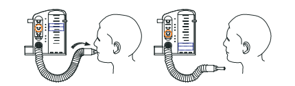 2. Непосредственно перед началом упражнения полностью выдохните весь воздух из легких. Вставьте мундштук в рот и плотно зажмите его между губами, чтобы воздух не выходил при вдохе.