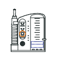 1. Откройте упаковку и достаньте дыхательный тренажер. Возьмите ингаляционную трубку с мундштуком из ручки, натяните ее на необходимую длину и вставьте открытый конец трубки в отверстие. Сдвиньте зеленую метку на отметку объема (мл), предписанную вашим врачом.
