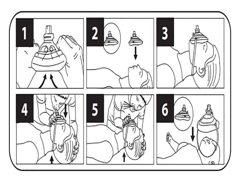 (Примечание: Если пациент рвет, снимите маску и очистите дыхательные пути пациента.)