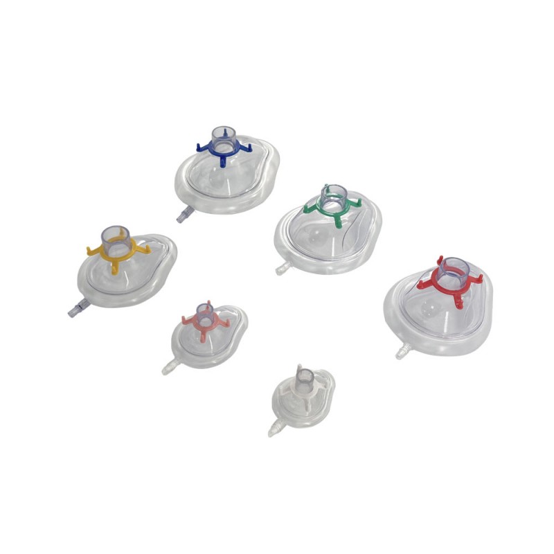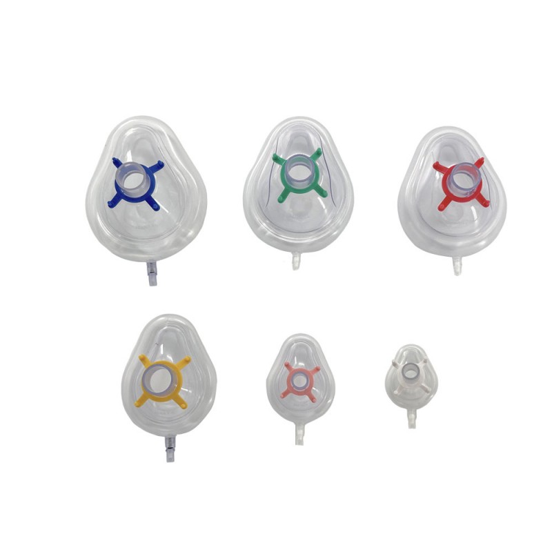 PVC anesthesia masks can be used in connection with medical equipment such as anesthetic apparatus, ventilators, oxygen machines,hyperbaric oxygen stores, inhaled painless delivery instruments and emergency breathing apparatus like Ambu bag/manual resuscitator.